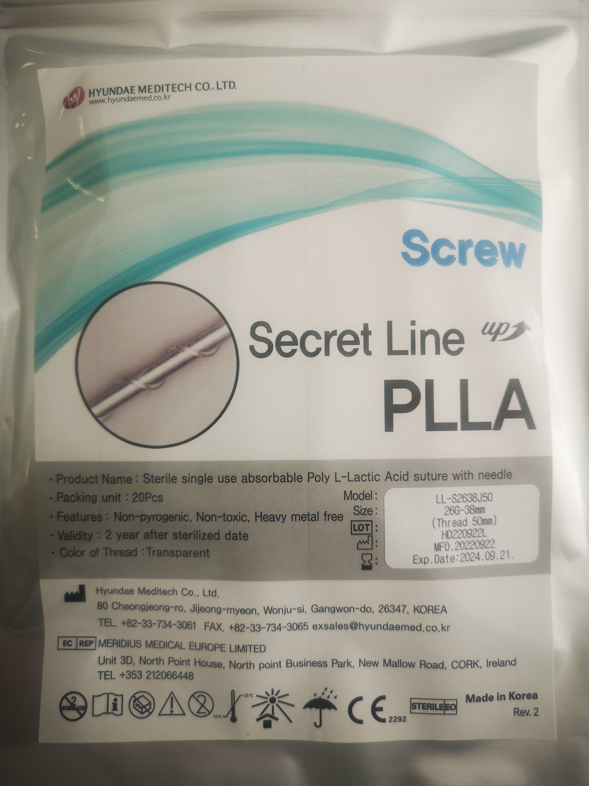 Product Name : sterile single use absorbable Poly L-Lactic Acid suture with needle. Packing unit : 20pcs . Features : Non -toxic ,Heavy metal free . Validity : 2 year after sterilized date . Exp.Date : 2024.09.21 Color of Thread : Transparent .
